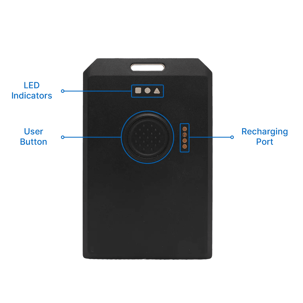 • Status LEDs (heartbeat, BLE, charging) – sunlight-readable feedback